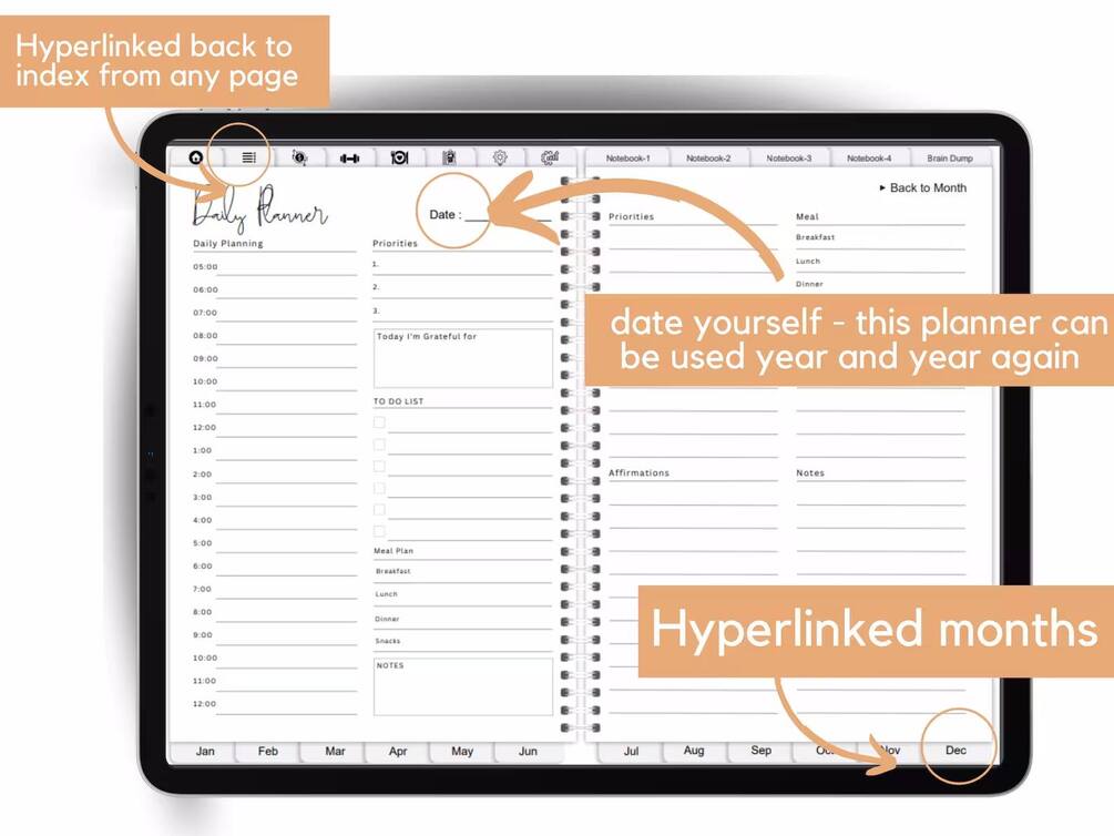 This planner is over 600+ pages long, it is completely hyperlinked. Please see the listing pics for the INDEX to see all pages that are included in this planner.